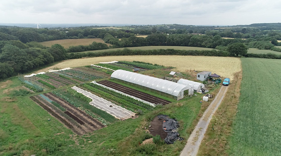 Down Farm market garden occupies just 3 acres of the total 90 acre farm, the rest being used for pasture, rearing cattle and growing silage. Actual cultivated land is no more than half an acre.